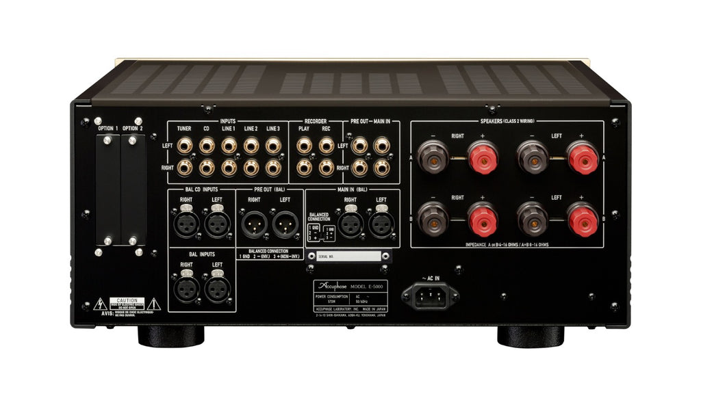 The E-5000 is the flagship high-power Class AB integrated amplifier developed to mark Accuphase’s 50-year anniversary. The preamplifier section features our superior Balanced AAVA volume control, while the power amplifier section includes an instrumentation amp and power transistors in a five-fold push-pull arrangement driven in Class AB. These circuits create a balanced circuit from input to output. With its precisely balanced circuits and solidly built output stage, the E-5000 integrated amplifier presents every piece of music in exquisite detail.