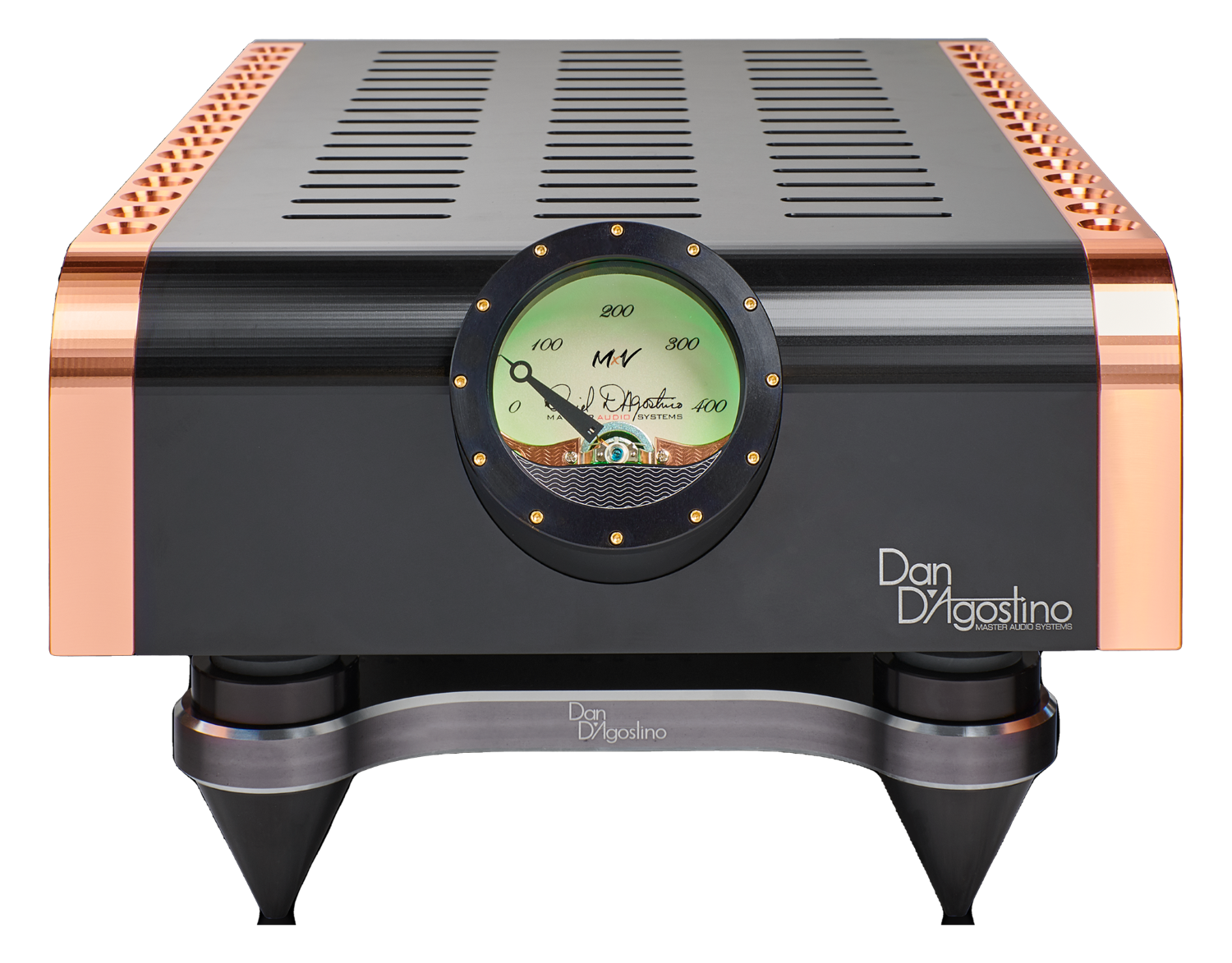 One iconic amplifier continues to lead, elevating Dan D’Agostino Master Audio Systems’ original amplifier design, while featuring techniques and topologies initially developed and implemented in the Relentless Series. This fullest expression of the Momentum circuitry is reflected in the model’s name, MxV. Those with a physics background will recognize that its name MxV, or Mass times Velocity, is the equation for Momentum.