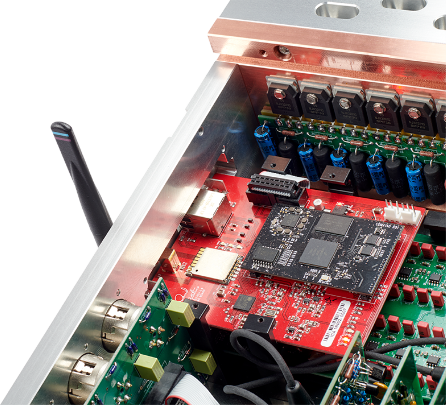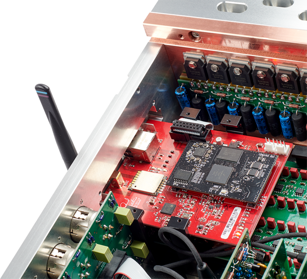 Employing a configurable, modular design, the core line stage section can be augmented to include modules for digital streaming as well as phonostage. When fully equipped, the Momentum MxV Integrated Amplifier topology is a seamless circuit working as one from input to output, optimizing performance in a way otherwise not possible.