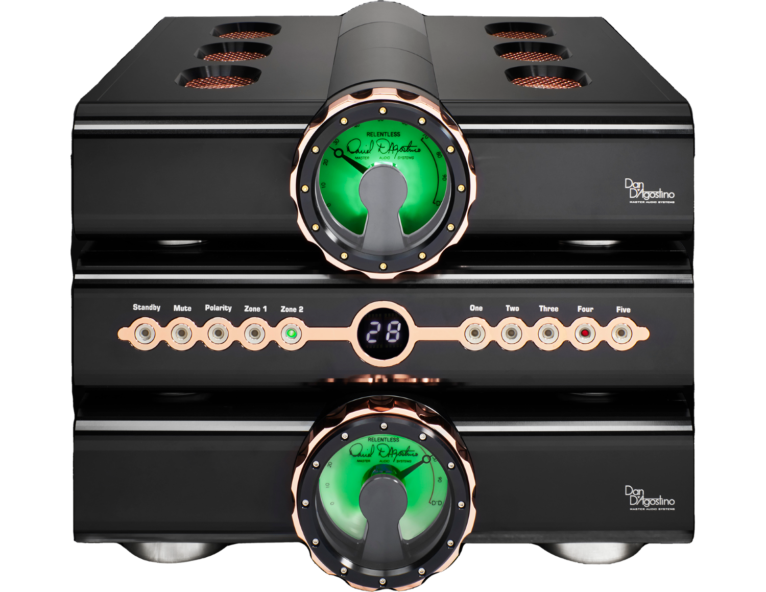 Coupling innovative circuitry, distinctive materials, and artisan manufacturing excellence in a sophisticated architecture, the Relentless Preamplifier is the perfect centerpiece for the ultimate music system.