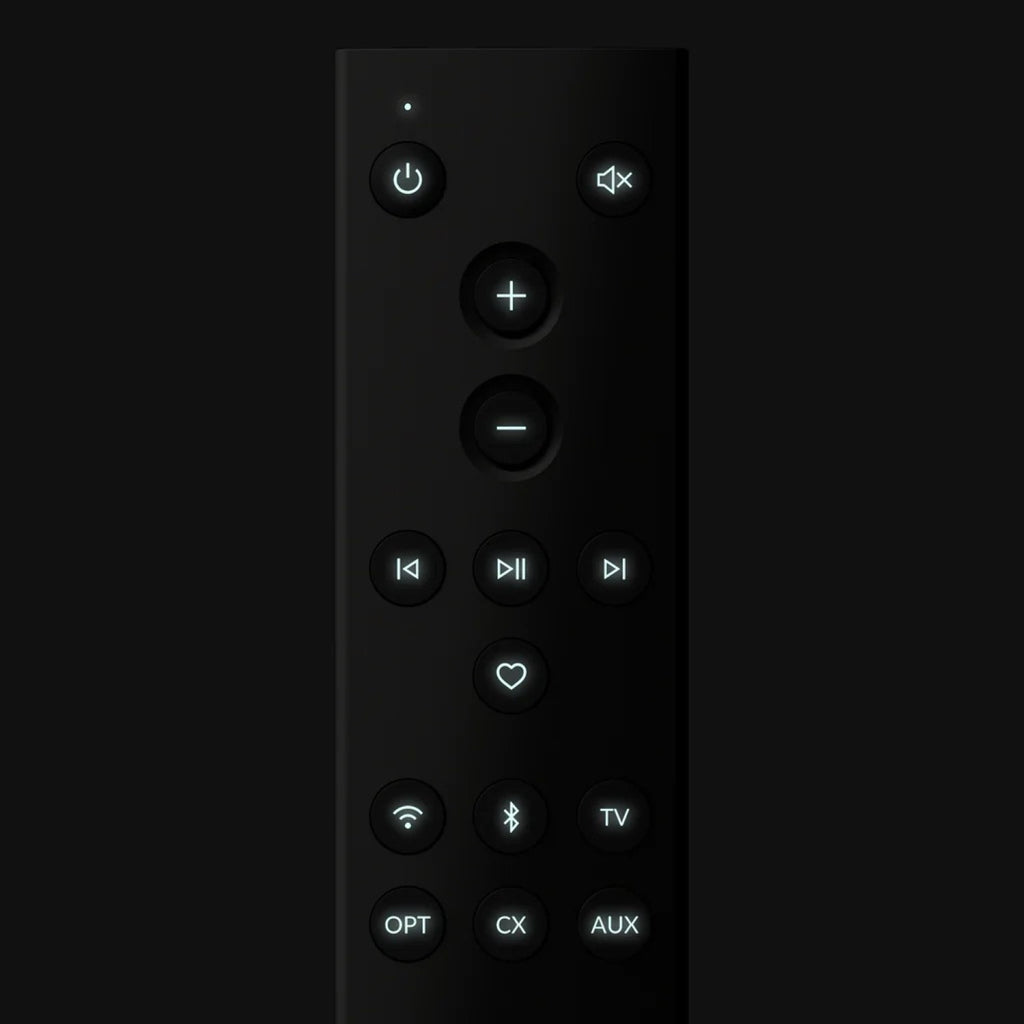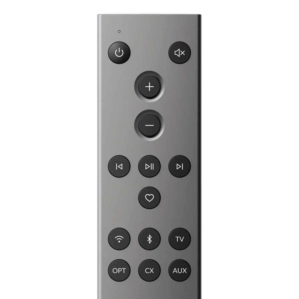 The C3 remote control provides advanced features for our LS Wireless Collection: LS60 Wireless, LS50 Wireless II, LSX II and LSX II LT. Crafted with an aluminium top plate, this premium remote features an improved layout, backlit buttons and a customisable Favourite button. The remote works out of the box using InfraRed (IR) technology and doesn't require pairing with speakers.