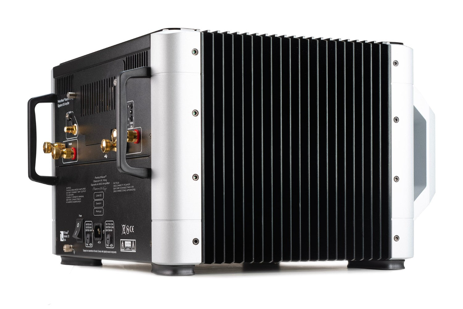 The importance of the power amplifier in the 2-channel system chain cannot be overstated, yet it's often overlooked. It's the rare few music lovers that truly appreciate the power amp's critical role in preserving music's nuanced details, because most amplifiers fail to preserve them. Overtones from plucked instruments, subtle cues defining placement, depth, soundstage width, and transient decays are often lost in the power amplifier. Suddenly revealed are the tiniest of details that now ring clear through the BHK, perfectly preserved through its low feedback, vacuum tube and MOSFET design. When it comes to musically controlling and powering loudspeakers, the BHK Signature 600 has no peer. The Signature 600 monoblock amplifier is a no holds barred upgrade from its series-mate, the BHK300. Its 1.6KVA power transformer is twice the size of the 300 and we didn't stop there. The 600's 300,000uF bank of low-ESR high-grade audio power supplies caps is double that of the 300 as are doubled the output MOSFETs producing some of the lowest output impedance and highest damping factors we have ever measured. The control this amplifier has over the music and the system is unrivalled.
