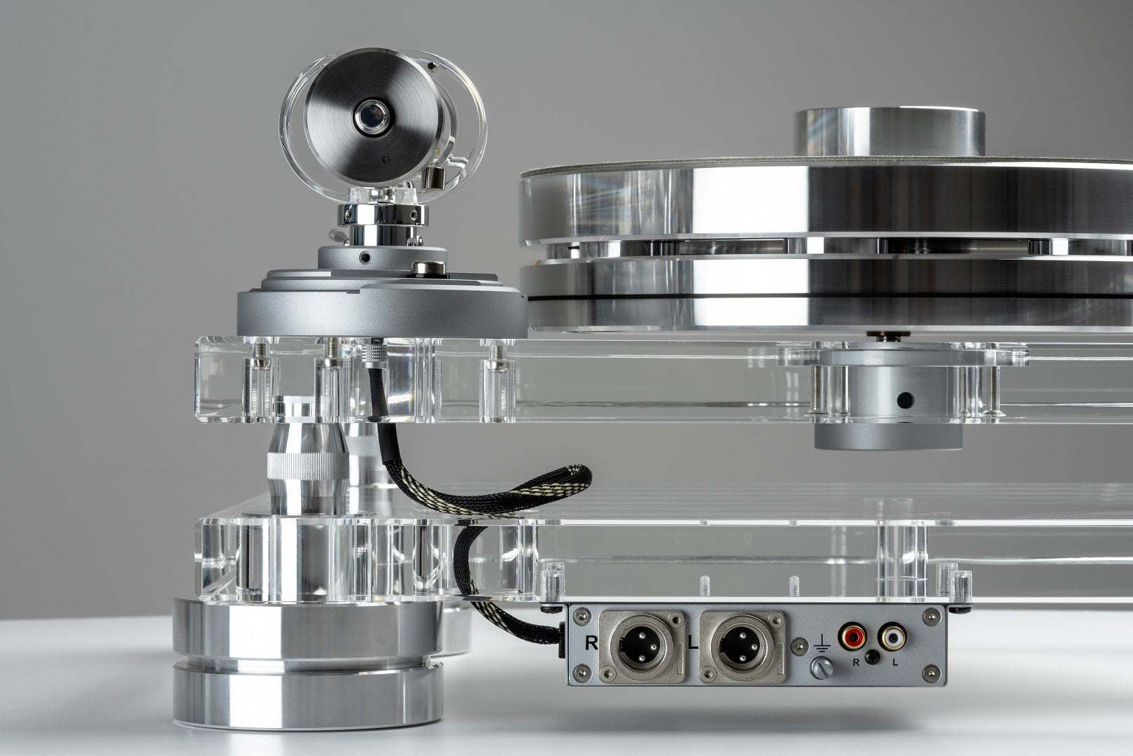 The 10-inch tonearm is a complete new ultra low resonance Musical Fidelity design with transparent acrylic bearing ring and conical aluminium tonearm tube. The tonearm is fully VTA and azimuth adjustable and comes with two counterweights to use it with cartridges from 6 to 20g. The counterweights are TPE damped to prevent resonances. On the back you can find standard phono RCA outputs, as well as balanced XLR sockets which gives you ultimate flexibility for your phono preamplifier choice.