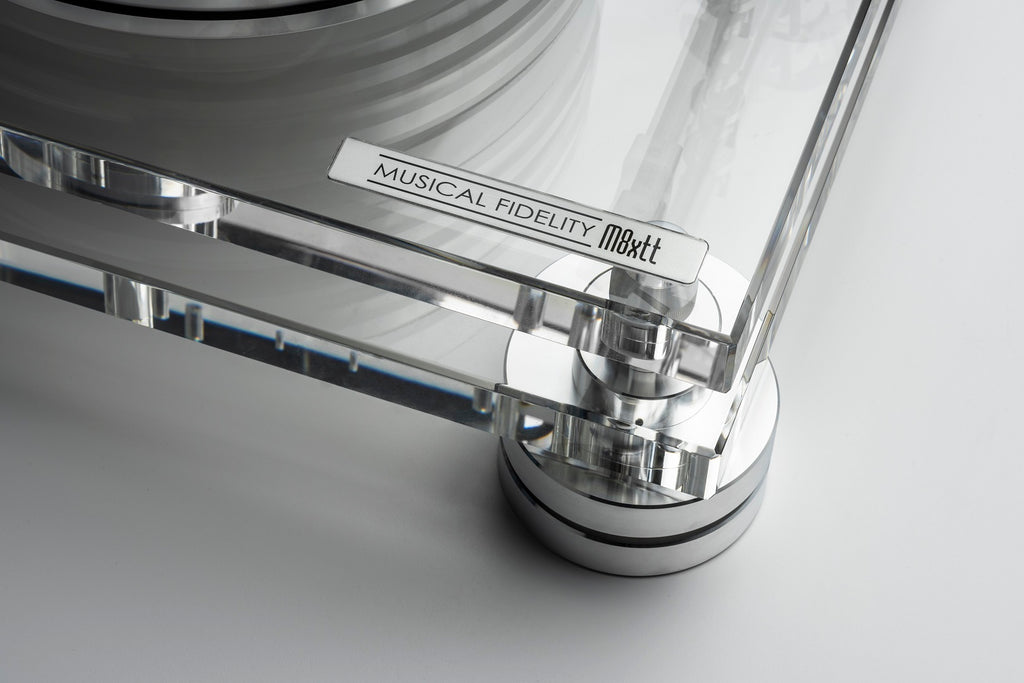 Antony Michaelson‘s idea of music was big scale, warm and mighty with details in colours. His amplifier creations are a rare expression of this sound character. In 2002 Antony asked Mr. Lichtenegger to help with a design with all these attributes. Also, the design was very important and should match the mechanically stunning amplifiers. The Musical Fidelity M1 was born and a great success. The base idea was to combine the inert mass of metal alloys with zero resonating acrylic. The motor was effectively decoupled from the tonearm and platter with the dual chassis construction. The new M8xTT is following the same design philosophies with even more expressive technical features.