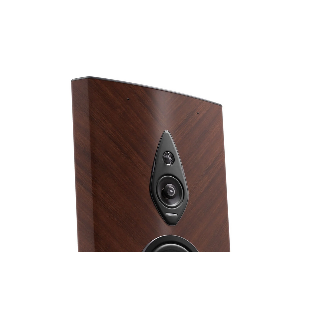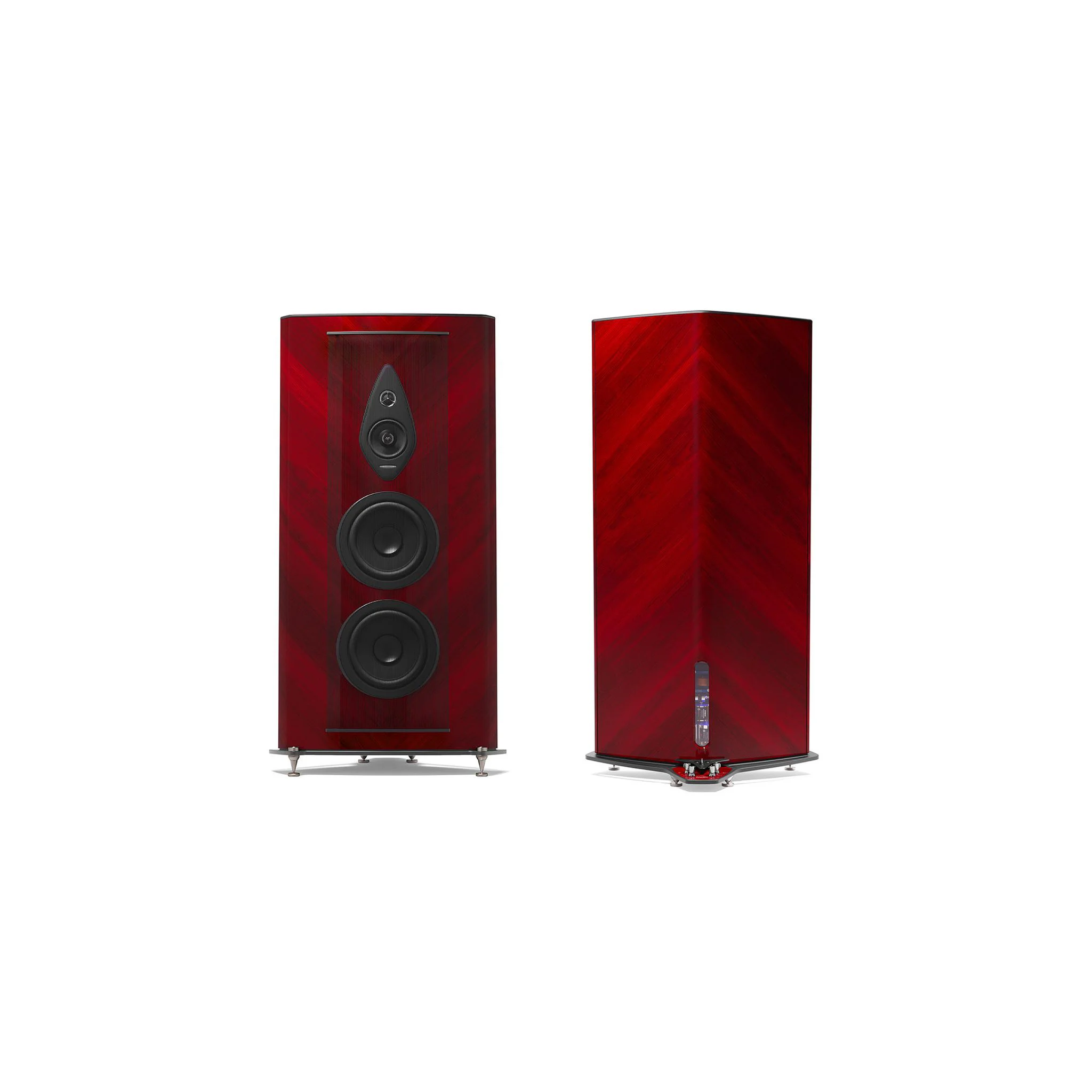 Stradivari maintains the legacy of meticulous woodworking and artisanship at the heart of every Sonus faber product. Seven layers of lacquer result in a rich red finish that covers the entire body of the Stradivari. The iconic front soundboard evokes the artistry of timeless wood-crafted musical instruments with modern influences woven in through interspersed aluminum architecture.