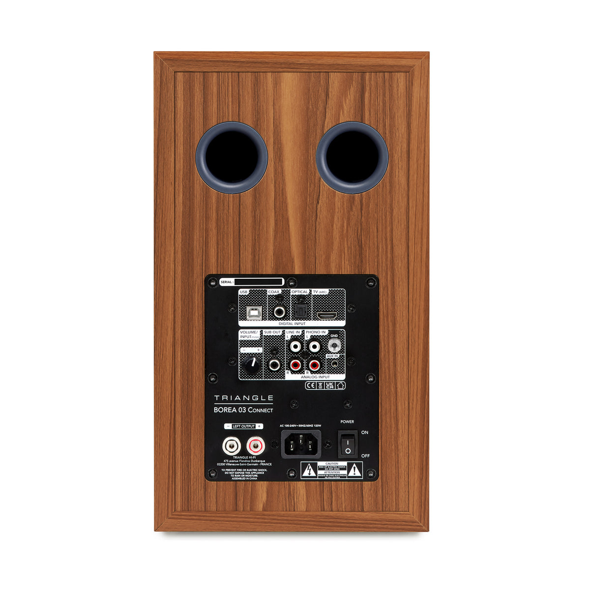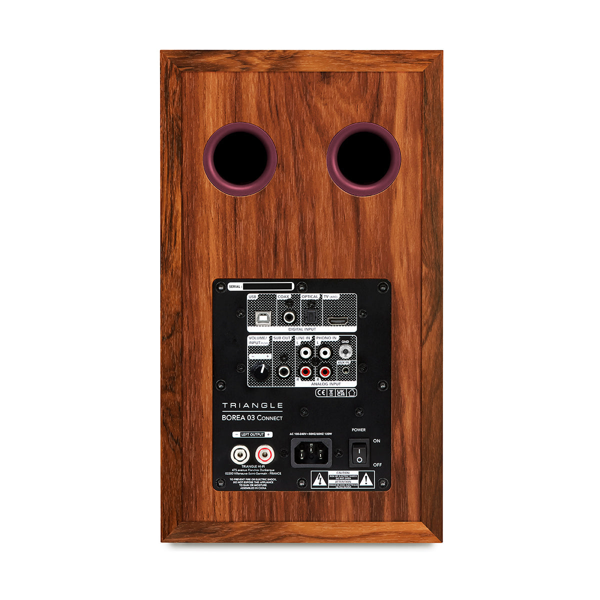 The 2x60 Watts Class D amplifier, combined with its 16cm TRIANGLE driver in natural cellulose paper and 25mm silk dome tweeter, delivers a perfectly controlled linear frequency response.