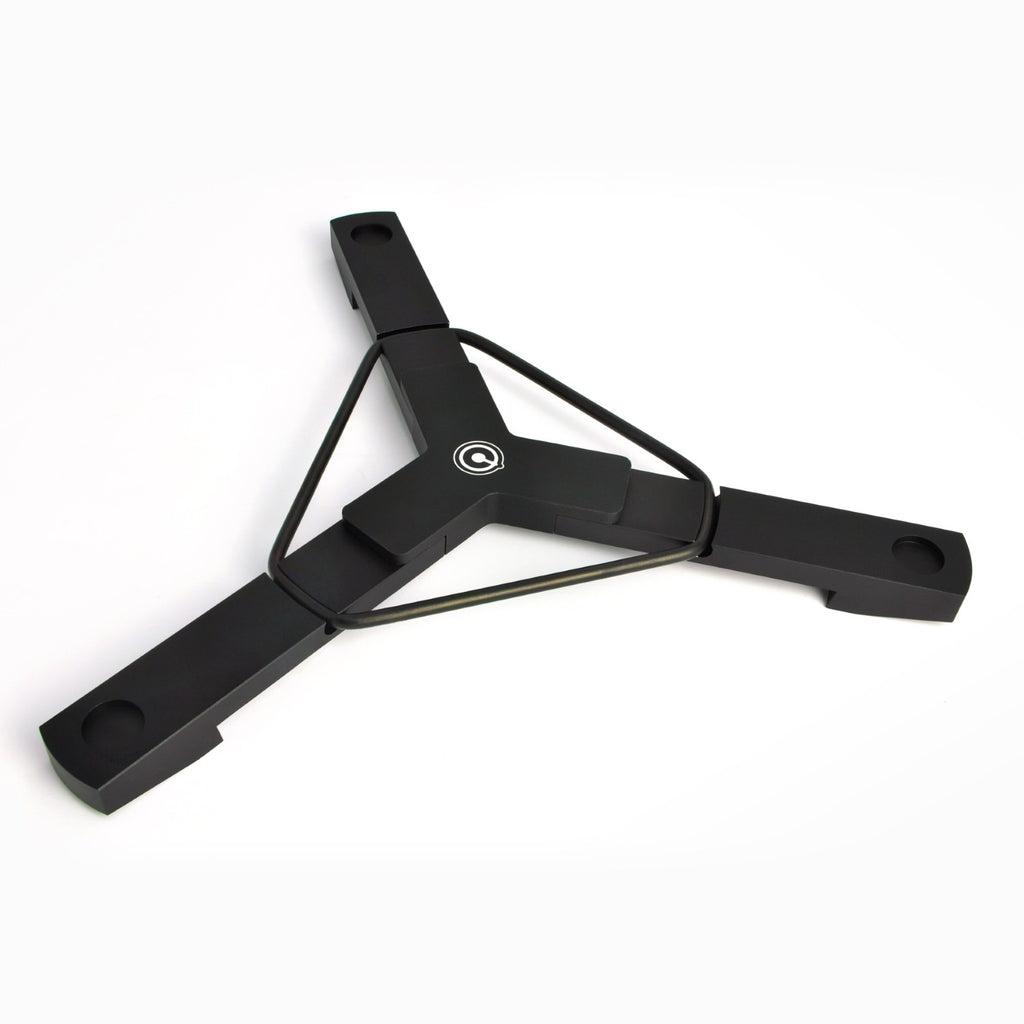 Components: Anodised aluminium center piece, three anodised aluminium legs, and rubber support ring.